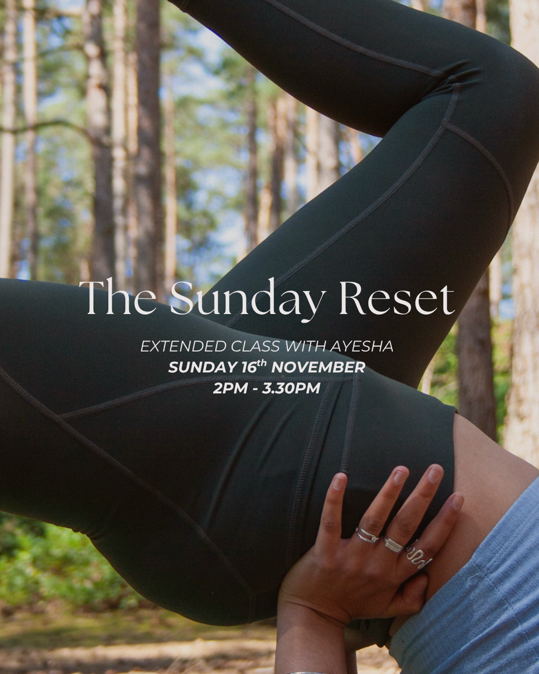 Treat yourself to a little extra time on the mat with this 90-minute extended practice, designed to help you unravel from the week and move into the next one with a calmer and steadier rhythm. Ayesha will guide you through a mindful flow, using breath-led movement to release tension and create space in the body. The practice will then ease into restorative postures held for longer periods, allowing the body to soften and the mind to settle. This gentle combination invites calm, helps to reset the nervous system, and encourages a slower pace. The Sunday Reset is a chance to step away from busyness, restore your energy, and enter the new week feeling refreshed.